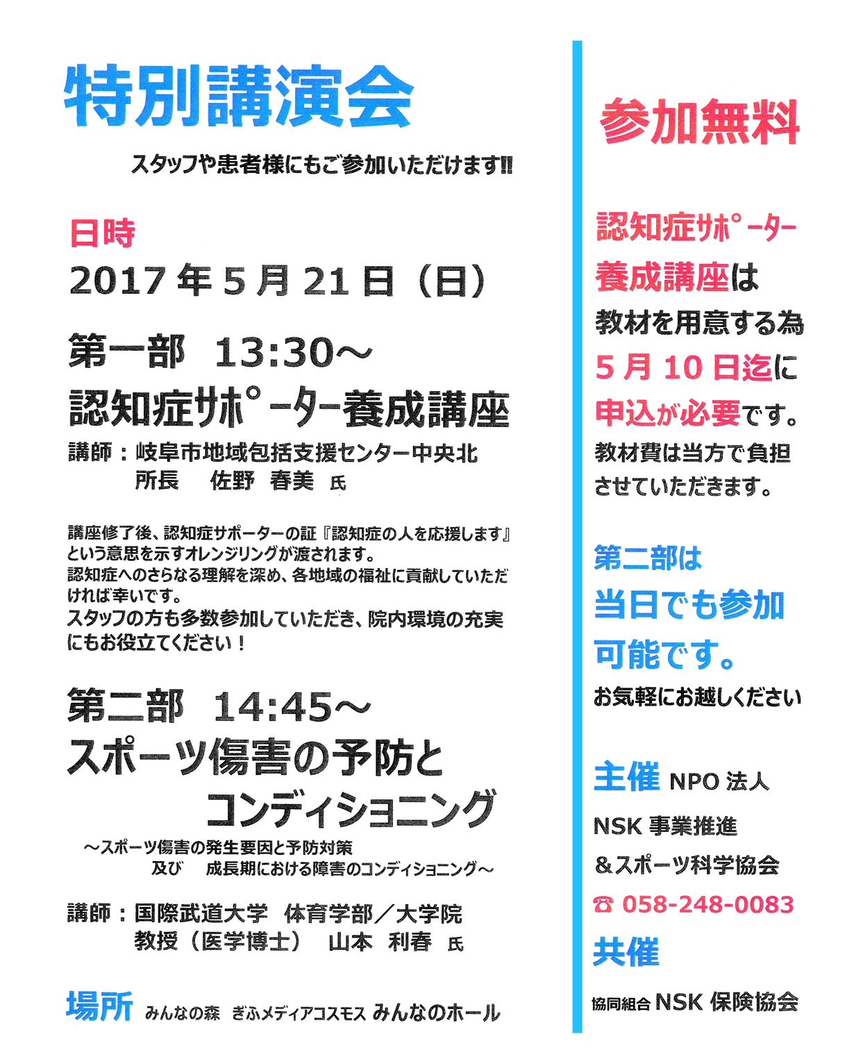 26日(日曜)犬山ハーフマラソンでランナーのサポートを行います。スタート/ ゴールのグランドの「NSKスポーツ科学協会」ブースにいます。 スポーツによる体のケアはとても大切です。 マラソンに参加される方はお気軽にご利用ください。