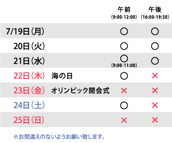 尚、7月17(月)は祝日ですが診療をおこなっておりますので、平日お時間のとれない方もお気軽にお問い合わせください。
