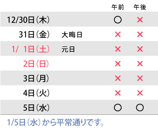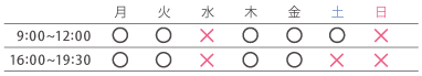誠に申し訳ありませんが診療時間は下記のとおりとなりますので、 ご不便をおかけしますが、お間違えの無いようお願いいたします。