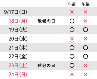 誠に申し訳ありませんが、9月17日〜24日の診療時間は