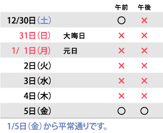 ・11日(土曜・祝日)は午前9時から12時まで診療します。