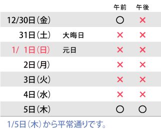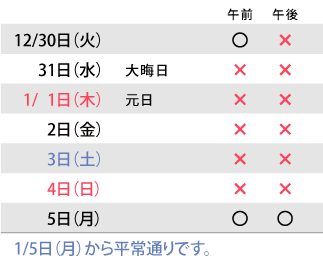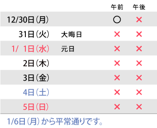 誠に申し訳ありませんが診療時間は下記のとおりとなりますので、 ご不便をおかけしますが、お間違えの無いようお願いいたします。