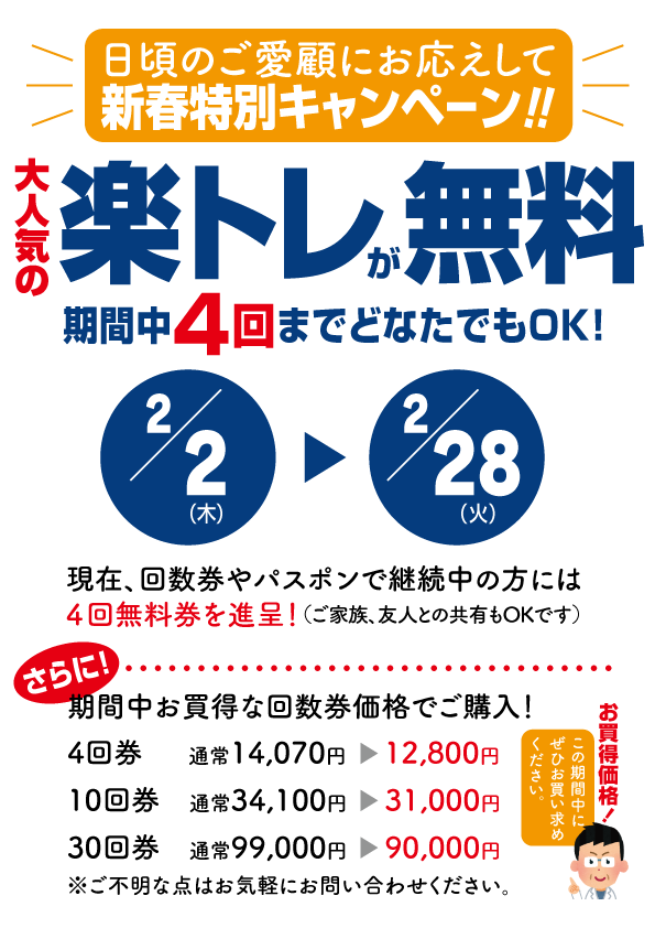 当院おすすめの「楽トレ治療」。その効果をまずは試してみたいという方へ、 トライアル4回券をご用意しました。